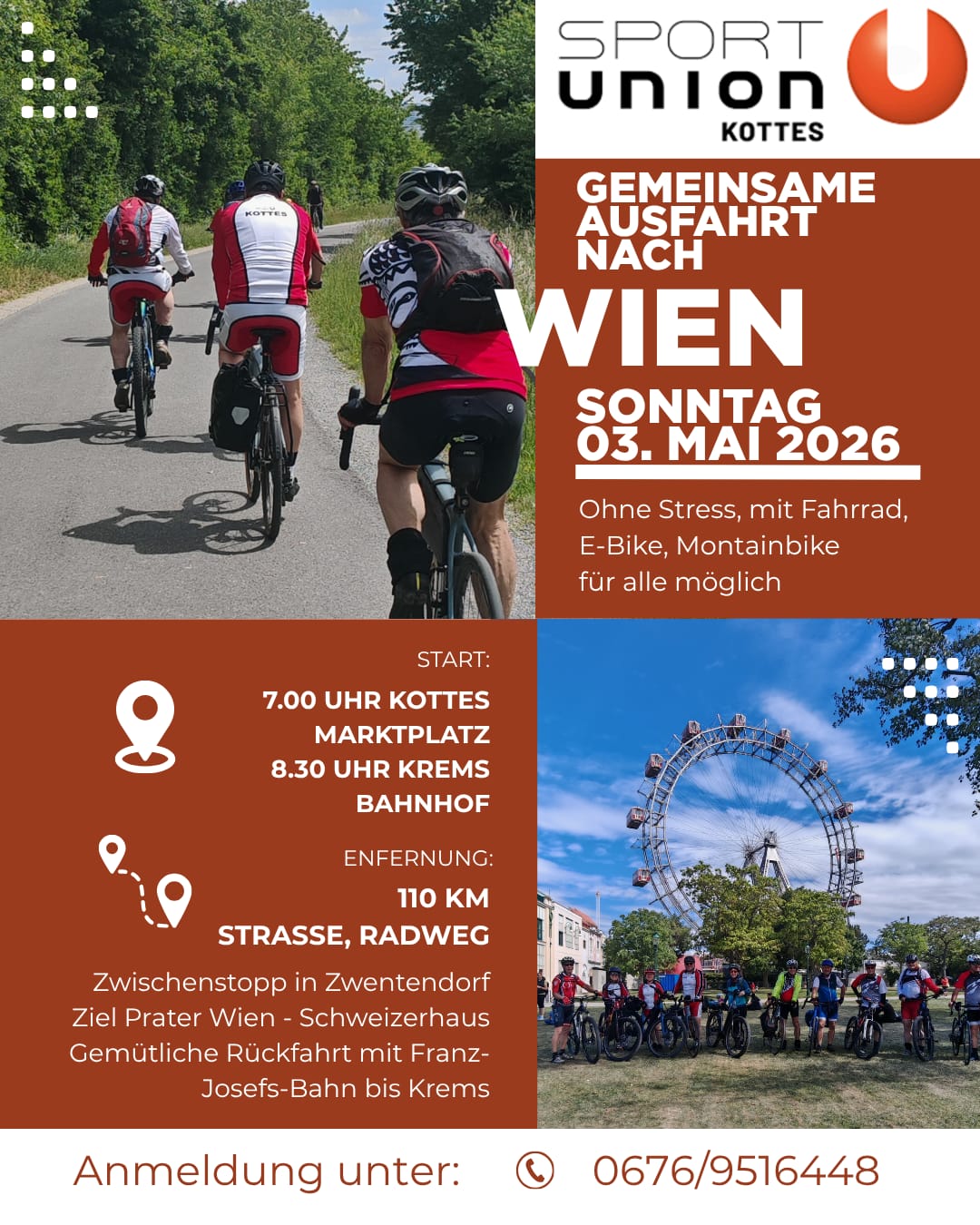 Jeder Mountainbiker ist herzlich eingeladen, bei unseren Touren die in 2-3 Stunden bewältigt werden, mitzuradeln. Kontakt Gerhard Leutgeb, tel: 0664 8862124